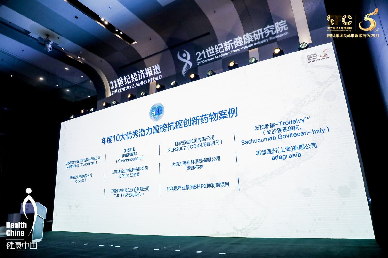 由21世纪经济报道、21世纪新健康研究院举办的2021中国大健康产业峰会于11月5日在深圳举行,“健康中国·21癌症关注(21CC)”优秀案例榜单于峰会期间发布,pa旗舰厅自主研发的全球首创新药SHP2抑制剂荣获“年度10大优秀潜力重磅抗癌创新药物案例”。